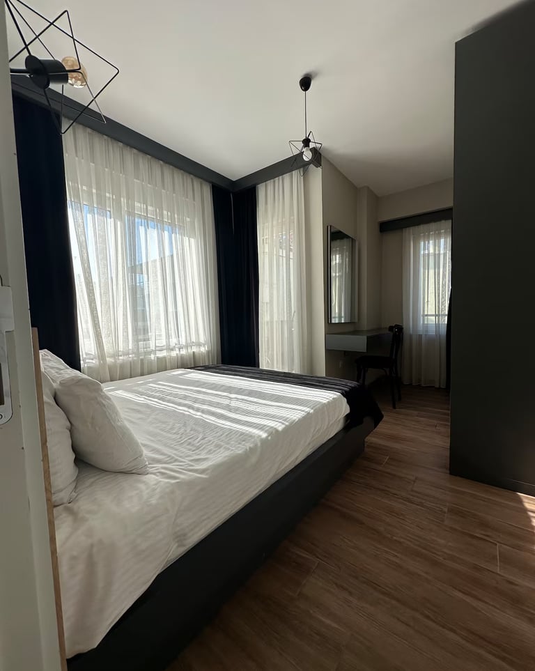 Discover a collection of modern and thoughtfully designed apartments at Sun Suites Lara. Each unit offers contemporary interiors, comfortable beds, a living area, kitchen amenities, Smart TV, fast Wi-Fi and a bright, welcoming atmosphere. Whether you’re staying short-term or long-term, our apartments provide the perfect balance of comfort, space and convenience just moments from Lara Beach and Antalya’s vibrant attractions.