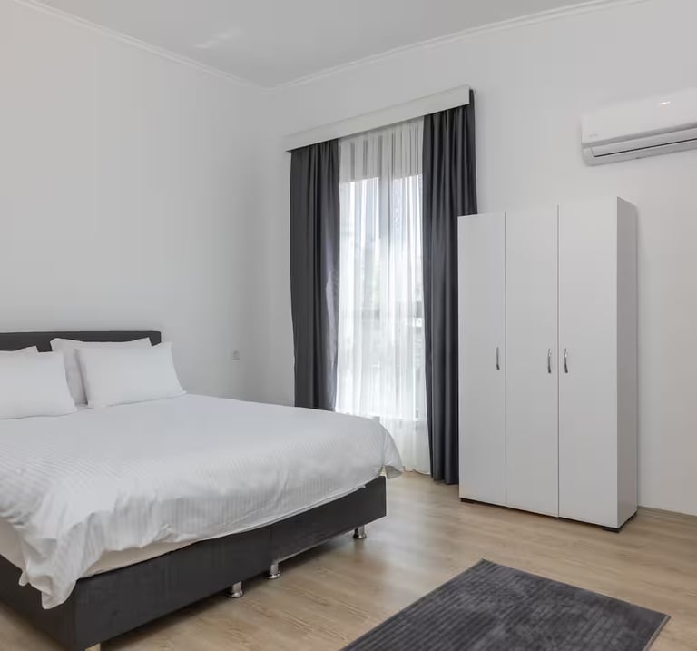 Konforlu çift kişilik yatak bulunan yatak odası